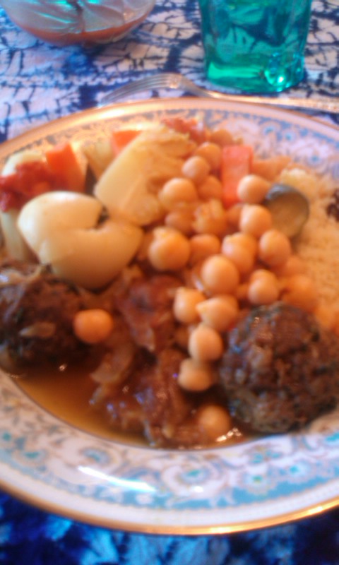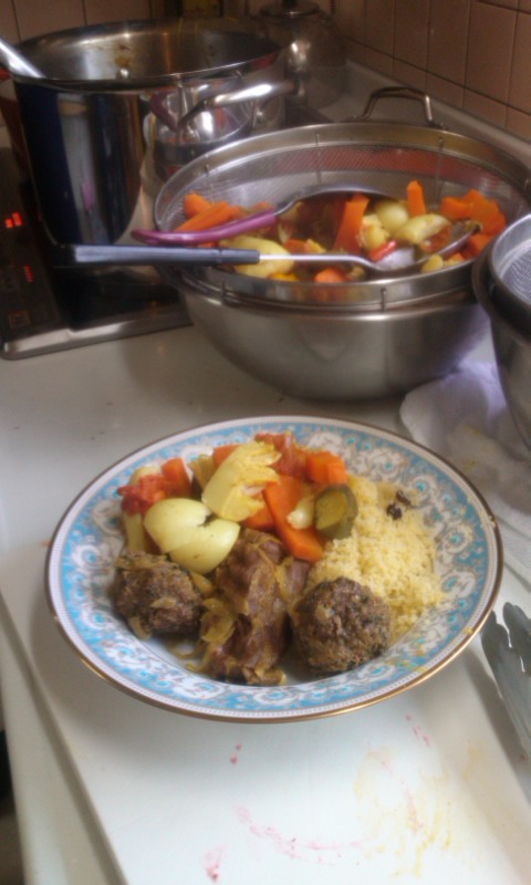 メインのクスクスは、ラムと肉団子と野菜のブイヨンスープを各々別に作り、